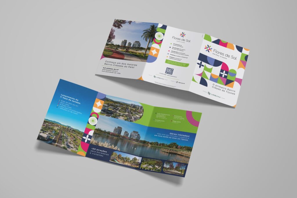A palavra era significado! Era preciso traduzir todas as defesas do naming para uma identidade visual. Assim, foram muitos testes até chegarmos na formulação perfeita. Seu símbolo surgiu em brainstorm, quando nossa COO Deise Schutz desenhou ao designer uma flor, que se formava por pétalas, mas quando todos olharam, no centro se formava um cristal, e sal é um cristal, e pronto! Marca feita era hora de desdobrar, então voltamos ao projeto e dele surgiu tudo. Cada curva, cada elemento, cada cor, tem um sentido, veio da planta de implantação e as cores do projeto de paisagismo. Então tínhamos a identidade fechada e os materiais começaram a nascer. E sabe o que foi o melhor, TUDO, mas TUDO MESMO, foi aprovado de primeira! Quando o processo de branding acontece com antecedência, o cliente se envolve e acredita, grandes projetos acontecem!