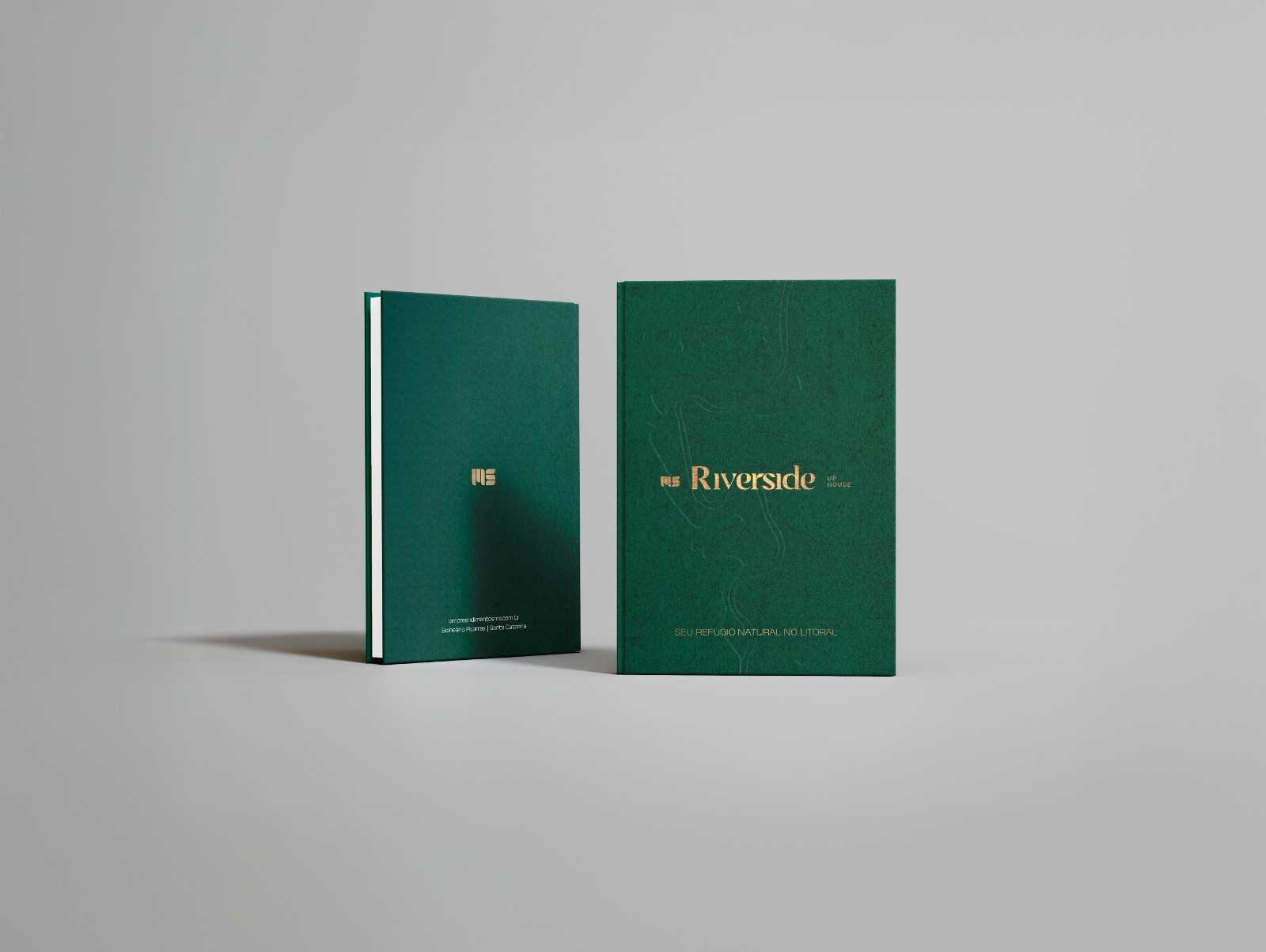 A marca Riverside foi criada a partir de uma construção cuidadosa entre tipografia, conceito e território. Seu desenho nasce da fusão de diferentes referências tipográficas, resultando em uma identidade visual única, que traduz o equilíbrio entre arquitetura e natureza.